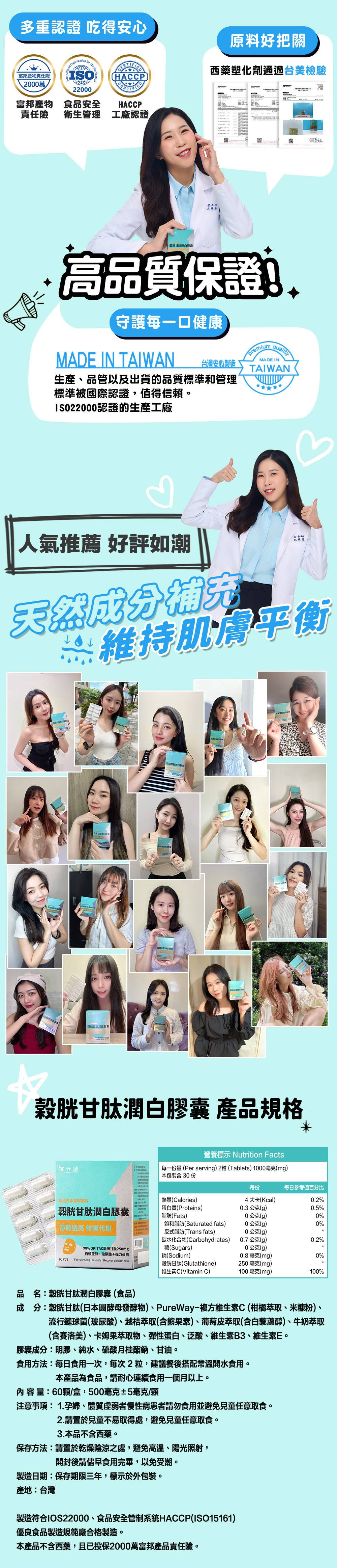 品 名:穀胱甘肽潤白膠囊 (食品)
